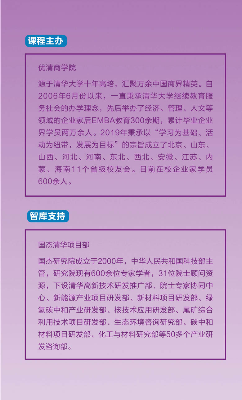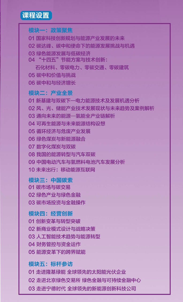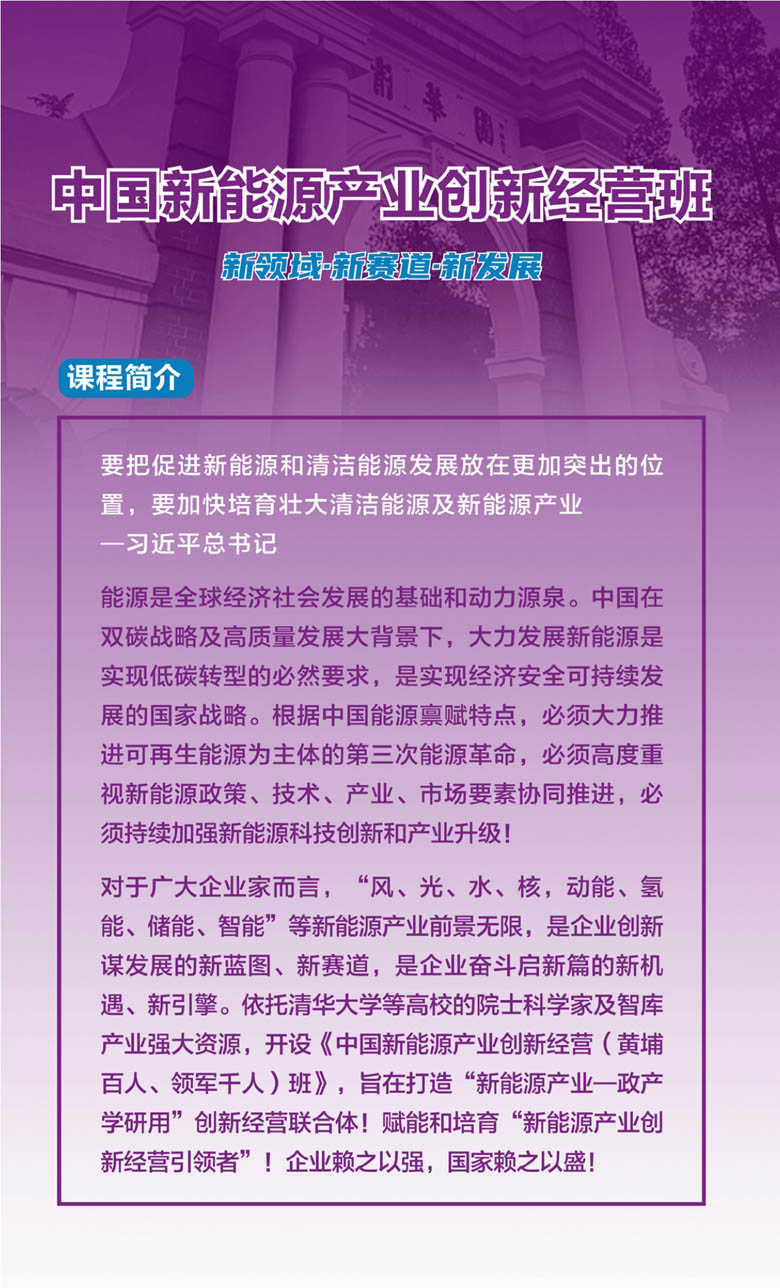 新能源產業創新經營班綠色可持續產業創新引領者,依托清華大學新能源領域院士專家及科研資源,12月24日-25清華園開學! 開課安排 新基建與雙碳下電力能源技術及