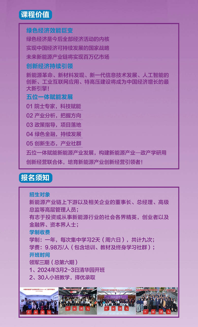 【新能源2024新春開班安排預告】 2024贏得優勢、贏得主動、贏得發展《中國新能源產業創新經營(領軍千人)班》由100+院士科學家、部長學者、領軍企業私塾輔導的