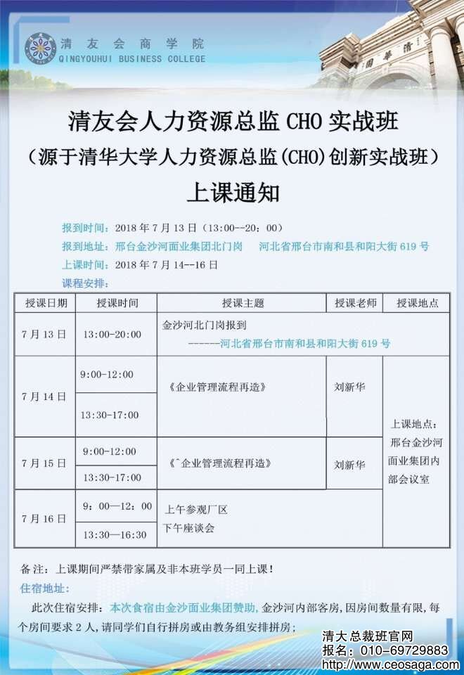 人力資源總監(jiān)CHO研修班2018年7月13-15日開課通知