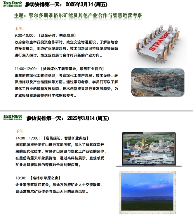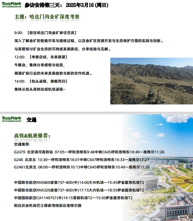 內(nèi)蒙古鄂爾多斯、包頭,作為我國(guó)礦產(chǎn)資源的富集區(qū)和重要的能源基地,在“十四五”規(guī)劃期間,積 極響應(yīng)國(guó)家找礦突破戰(zhàn)略,重視戰(zhàn)略性礦產(chǎn)的勘探與綠色開(kāi)發(fā)。同時(shí)將地區(qū)資源特色與經(jīng)濟(jì)社會(huì)發(fā)展緊密 結(jié)合,通過(guò)科技創(chuàng)新的強(qiáng)力驅(qū)動(dòng),致力于能源基地的全面升級(jí),以及礦產(chǎn)資源在地轉(zhuǎn)化與低碳輸出,成為 全國(guó)創(chuàng)新轉(zhuǎn)型引領(lǐng)的示范區(qū)域。 尤其在礦業(yè)提質(zhì)增效過(guò)程中,內(nèi)蒙古不僅實(shí)現(xiàn)了戰(zhàn)略性礦產(chǎn)的大幅增儲(chǔ),更著眼于資源利用效率的根 本提升,推動(dòng)傳統(tǒng)礦業(yè)向智能化、綠色化方向轉(zhuǎn)型升級(jí),為礦業(yè)的可持續(xù)發(fā)展注入了強(qiáng)勁動(dòng)力。 2025年3月14日—16日,中國(guó)礦業(yè)能源投融資高研班將深入內(nèi)蒙古鄂爾多斯、包頭,實(shí)地探訪國(guó)家能 源準(zhǔn)格爾礦區(qū)、包頭鋼鐵集團(tuán)及哈達(dá)門(mén)溝金礦。