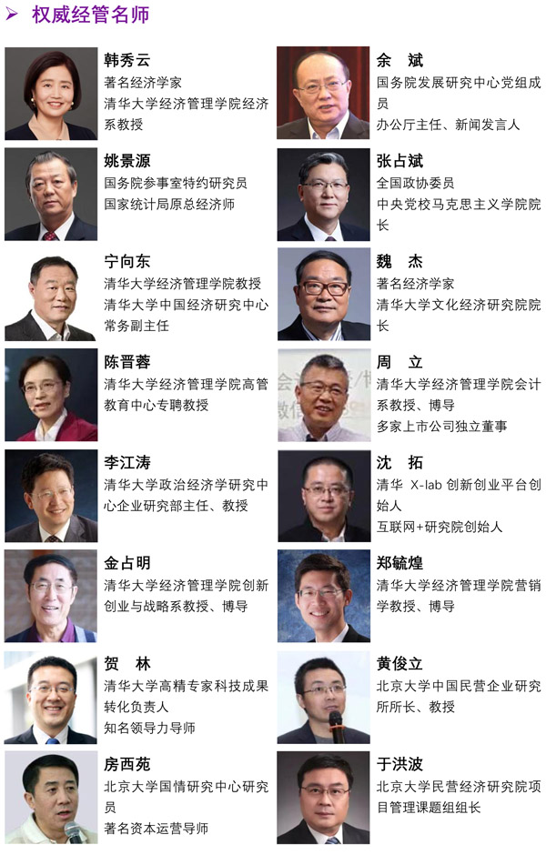 工商管理EMBA總裁研修班老師介紹:清華大學卓越商道總裁班往屆名師: