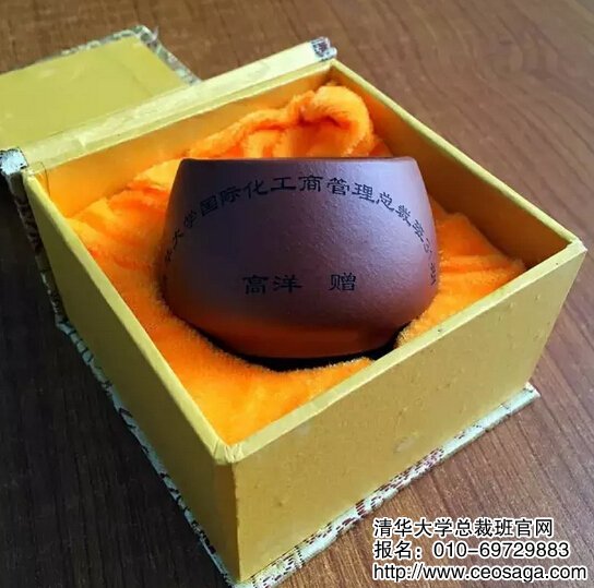 愛出者愛返,福往者福來,感謝高洋同學為每人準備了一枚紫砂杯紀念。“清華大學國際化工商管理總裁班31期”,一個班級,一枚紫砂杯,承載了濃濃同學情。