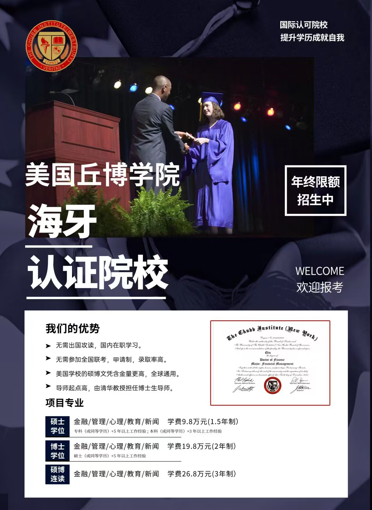 美國(guó)丘博學(xué)院碩士/博士學(xué)位班火熱招生中